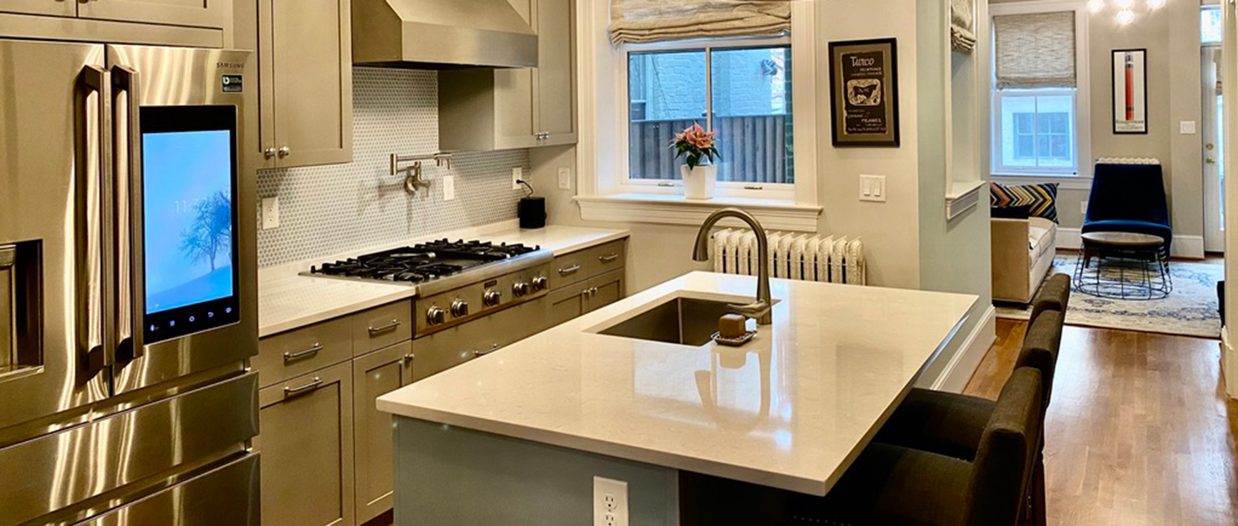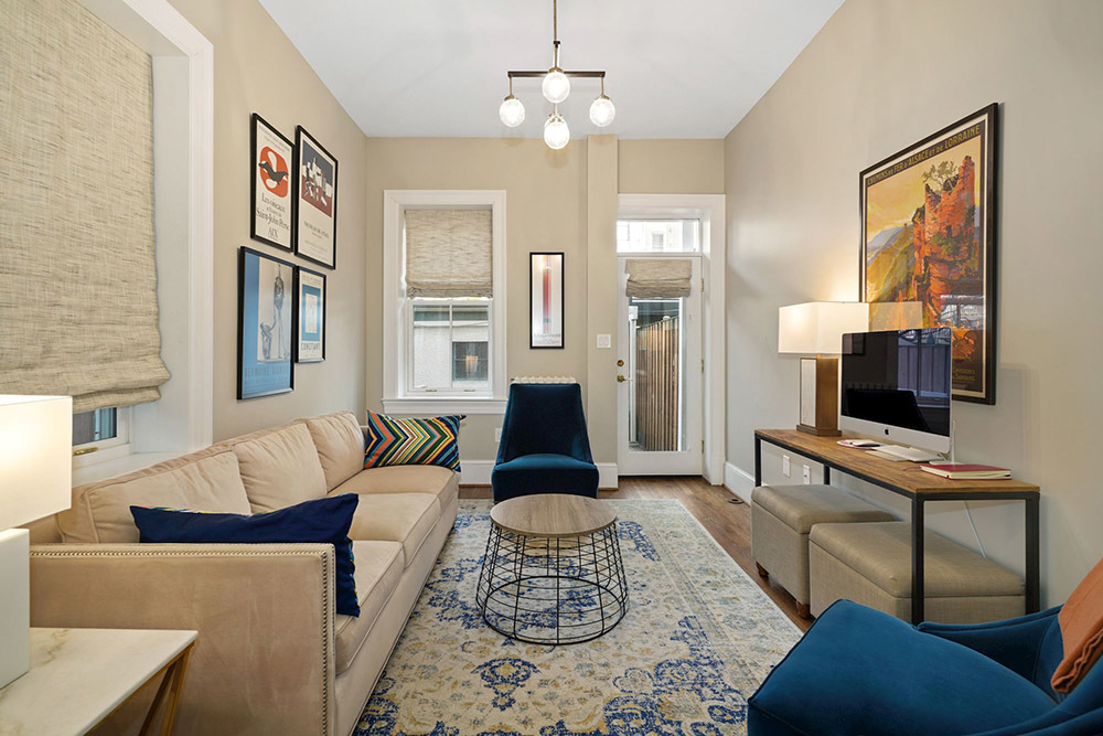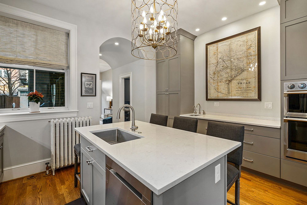 Ideally located on one of the prettiest streets in the Kalorama Triangle, this beautifully renovated Georgian Revival welcomes you. From the elevated front walkway, the multilevel townhouse presents magnificently, with a projecting front bay, patterned brickwork and exquisite cornice detailing. Step through the wide front door, and into a warm and comfortable embrace.